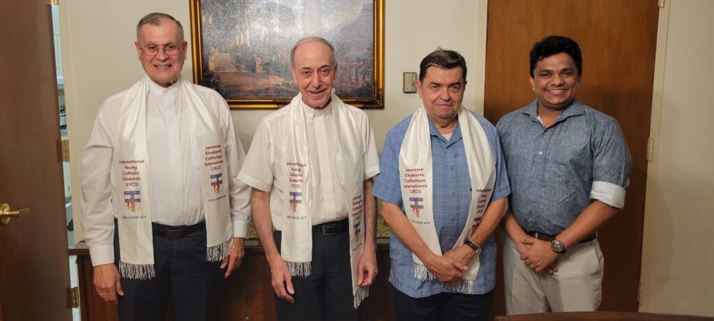 During his recent visit to New York for the United Nations General Assembly, the Secretary General of the International Young Catholic Students (IYCS), Roshan Melwyn Lobo engaged in a series of meaningful meetings aimed at strengthening partnerships and fostering collaboration among Catholic institutions and youth movements. One of the key highlights of the visit was the meeting with Rev. Dr. Fernando Real, Superior General of the Idente Missionaries, where discussions focused on deepening the relationship between the congregation, its institutions, and IYCS through joint initiatives that promote peace, education, and youth empowerment.